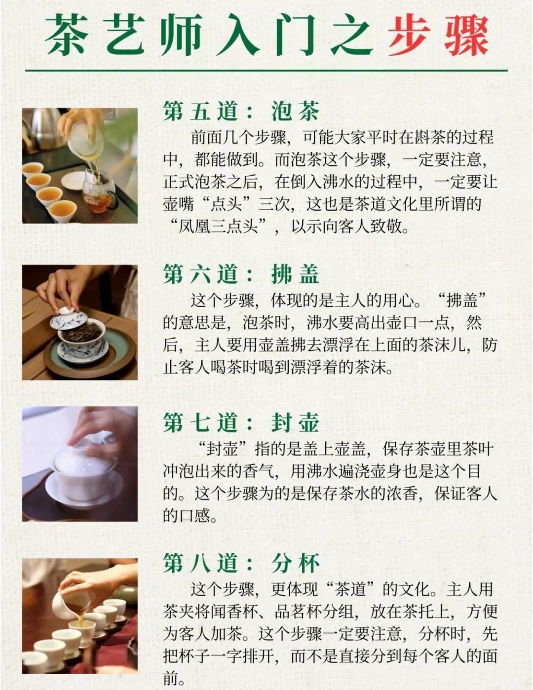 茶道不仅仅是泡茶,它是一种文化,一种对自然和客人的尊重。通过这些步骤,你可以逐渐掌握茶艺的精髓,成为一名合格的茶艺师。